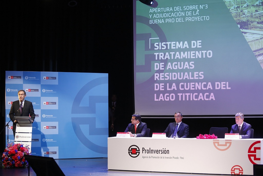 Vizcarra Cornejo destacó que el proceso para adjudicar la concesión del Sistema de Tratamiento de Aguas Residuales de la Cuenca del Lago Titicaca (donde quedaron cuatro postores calificados), se hizo con total transparencia, y se otorgó la buena pro a la mejor propuesta económica.